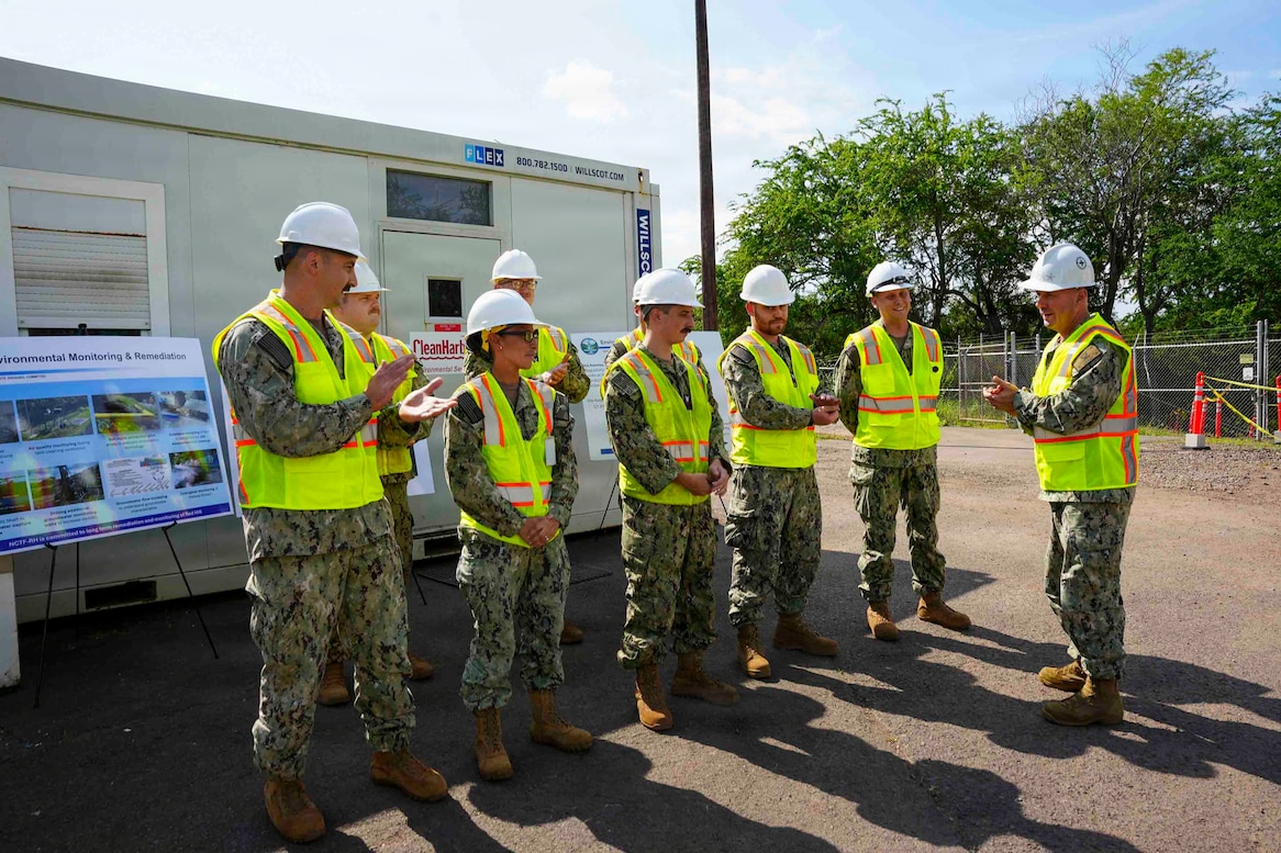 Vice Chief of Naval Operations Adm. Jim Kilby meets with Sailors assigned to Navy Closure Task Force - Red Hill (NCTF-RH), while visiting Joint Base Pearl Harbor-Hickam, Hawaii, Jan. 20, 2026. His visit reinforces the Navy’s commitment to the safe and expeditious decommissioning of the Red Hill Bulk Fuel Storage Facility. Kilby visited Hawaii to tour Pearl Harbor Naval Shipyard, NCTF-RH, and Joint Base Pearl Harbor-Hickam; engage with Sailors; and meet with leadership to discuss the strategic importance of the region, Sailor Quality of Service, and Navy readiness. (U.S. Navy photo by Mass Communication Specialist 2nd Class Krystal Diaz)