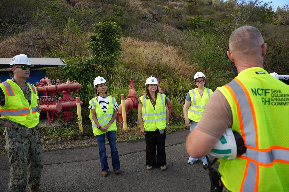 The safety officer for Navy Closure Task Force-Red Hill (NCTF-RH) provides a safety brief to members of the University of Hawaii Red Hill Registry during a site visit to the Red Hill Bulk Fuel Storage Facility (RHBFSF) in Honolulu, Sept. 26, 2025. Charged with the safe decommissioning of the RHBFSF, NCTF-RH was established by the Department of the Navy as a commitment to the community and the environment. NCTF-RH continues to engage with the people of Hawaii, regulatory agencies, and other stakeholders as it safely and deliberately decommissions the facility. (U.S. Navy photo by Mass Communication Specialist 3rd Class Krystal Diaz)
